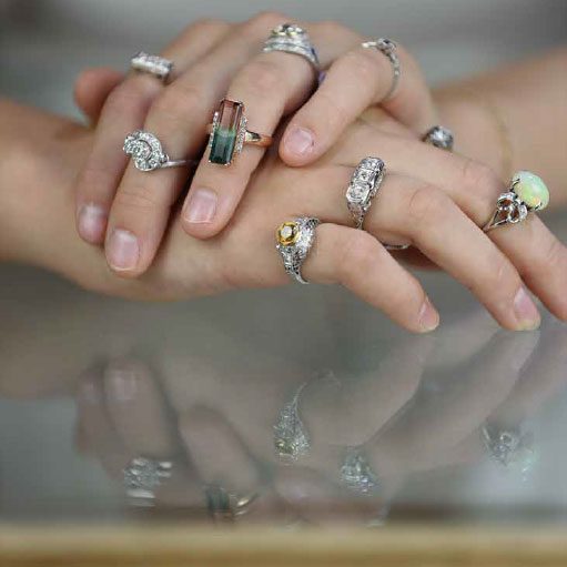 A. Anderson Jewelers has both new and estate jewelry. We have handmade pieces by Rees available in-store or we can create one for you, using your imagination & creativity to make the piece as one-of-a-kind as you. We have a large assortment of new diamond jewelry, colored gem jewelry, and engagement rings. If you aren’t able to find what you’re looking for let us know, and we can help!